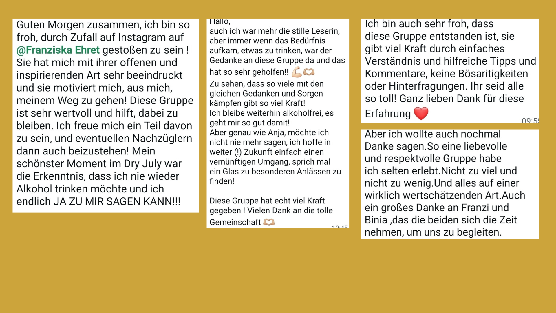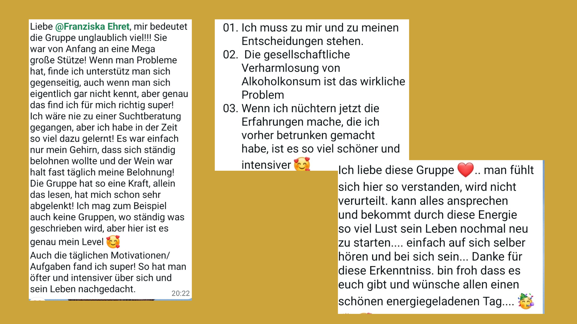 eine Pause vom Alkohol einlegen und dabei von der Gruppe getragen und unterstützt werden